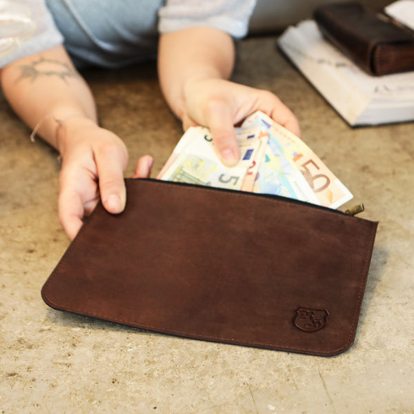 Das ist ganz einfach: Wir fertigen unsere Geldbeutel ausschließlich per Hand aus echtem vollnarbigen Büffelleder, welches als das robusteste Leder der Welt gilt. Zusätzlich versiegeln wir durch die besondere Schleiftechnik die Oberfläche der Geldbeutel. Während der Verwendung unserer Geldbeutel entsteht dadurch eine lebendige Patina die den individuellen Charakter dieses ausdrucksstarken Leders unterstreicht.