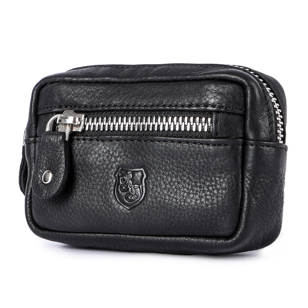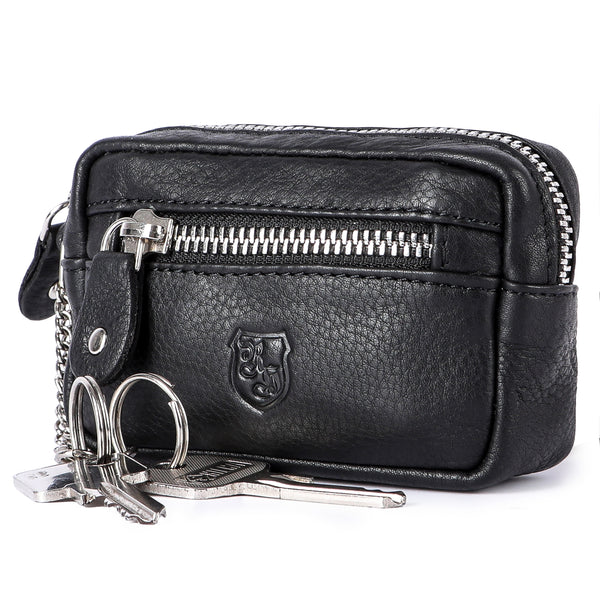 Schwarzes Echtleder, feine Naht, durchdachtes Innenleben – die Schlüsseltasche für stilbewusste Alltagshelden.