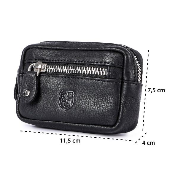 Die Schlüsseltasche Zenz Black ist der Inbegriff von praktischer Eleganz. Hergestellt aus feinstem schwarzen Echtleder vereint sie minimalistisches Design mit cleverer Funktionalität. Durch ihre kompakte Größe passt sie in jede Hosen- oder Handtasche und bietet dennoch genügend Raum für Schlüssel, Kleingeld und sogar Karten.