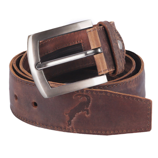 Der rustikale Look dieses Gürtels macht ihn zum perfekten Accessoire für Männer mit Charakter. Das versteckte Fach bleibt unsichtbar, bietet aber extra Sicherheit für unterwegs.