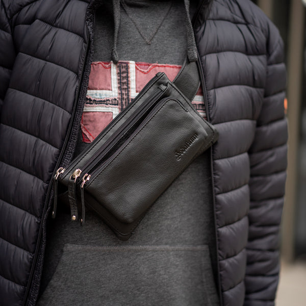 Der verstellbare Gurt passt sich dir an – ob um die Hüfte oder quer über die Schulter.