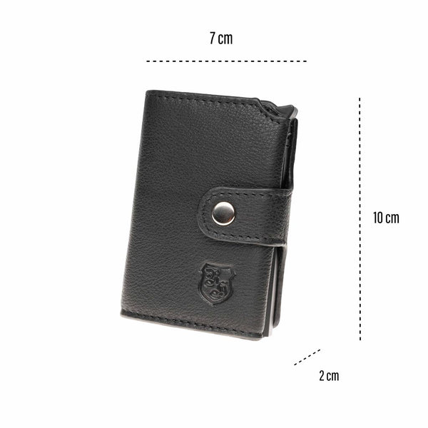 Trotz seiner kompakten Größe bietet das Etui Platz für bis zu 10 Karten, ein cleveres Münzfach für Kleingeld sowie ein Fach für gefaltete Scheine. Dank des integrierten RFID-Schutzes sind deine Daten unterwegs bestens geschützt.