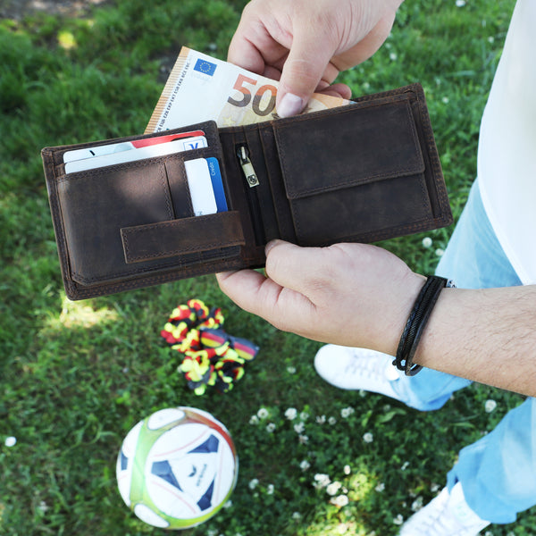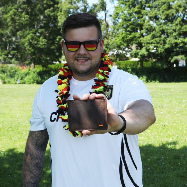 Die Deutschland EM Geldbörse – Classic Börse Lugge ist das perfekte Accessoire für alle, die Stil, Funktion und Fußball-Leidenschaft vereinen wollen. Mit ihrem hochwertigen Echtleder, der kompakten Form und dem dezenten Deutschland-Design ist sie nicht nur ein praktischer Alltagsbegleiter, sondern auch ein echter Fan-Statement zur EM 2024.