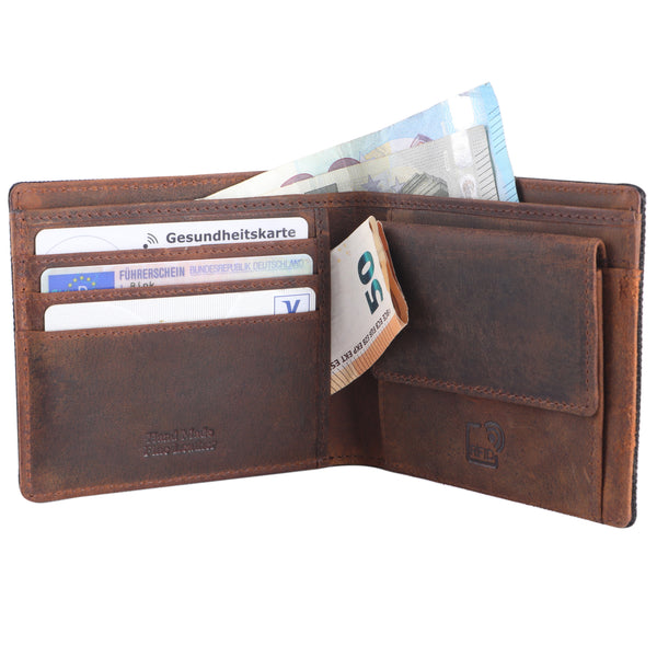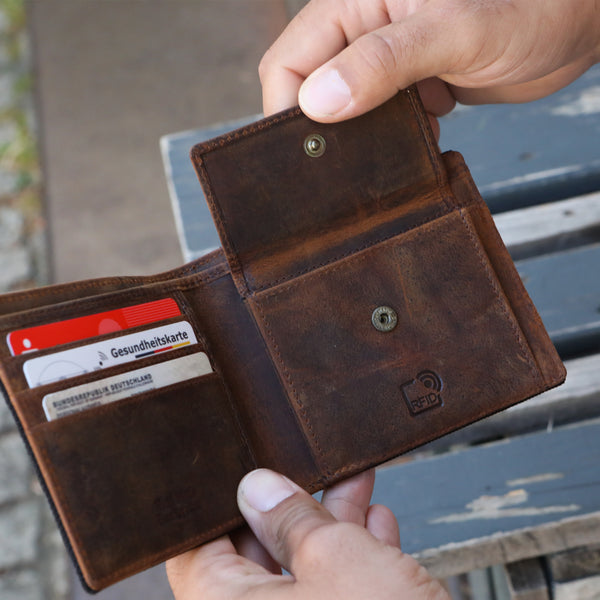 Das ist ganz einfach: Wir fertigen unsere Geldbeutel ausschließlich per Hand aus echtem vollnarbigen Büffelleder, welches als das robusteste Leder der Welt gilt. Zusätzlich versiegeln wir durch die besondere Schleiftechnik die Oberfläche der Geldbeutel. Während der Verwendung unserer Geldbeutel entsteht dadurch eine lebendige Patina die den individuellen Charakter dieses ausdrucksstarken Leders unterstreicht.