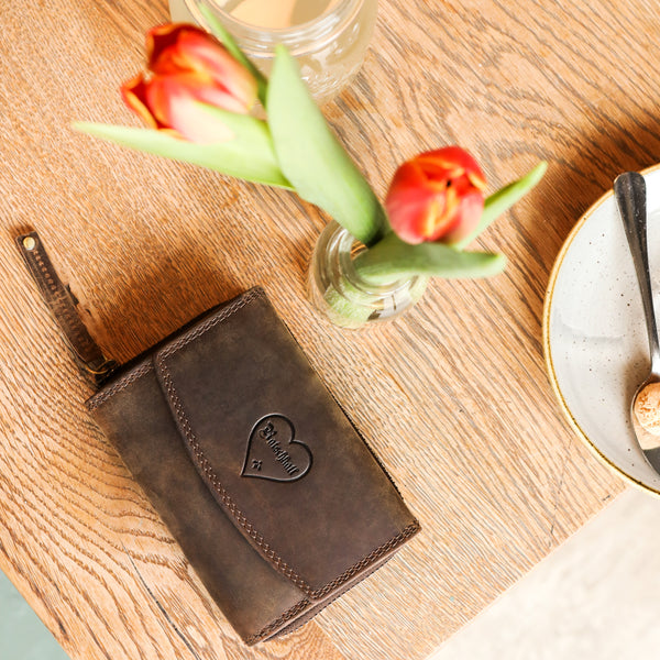Die Kleine Geldbörse Hilde vereint Funktionalität mit charmantem Design. Gefertigt aus hochwertigem Echtleder, bietet sie trotz ihrer kompakten Größe ausreichend Platz für alles Wichtige – Karten, Scheine und Münzen. Ideal für alle, die es unkompliziert und übersichtlich mögen, ohne auf Stil verzichten zu wollen.