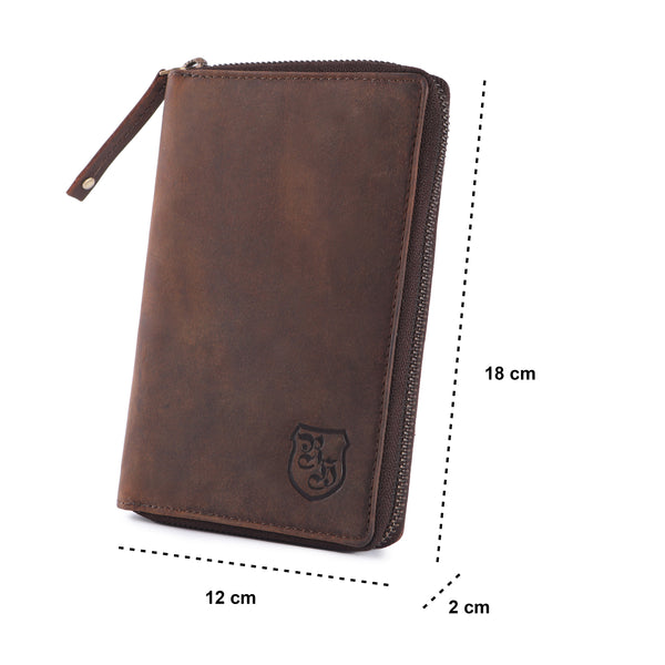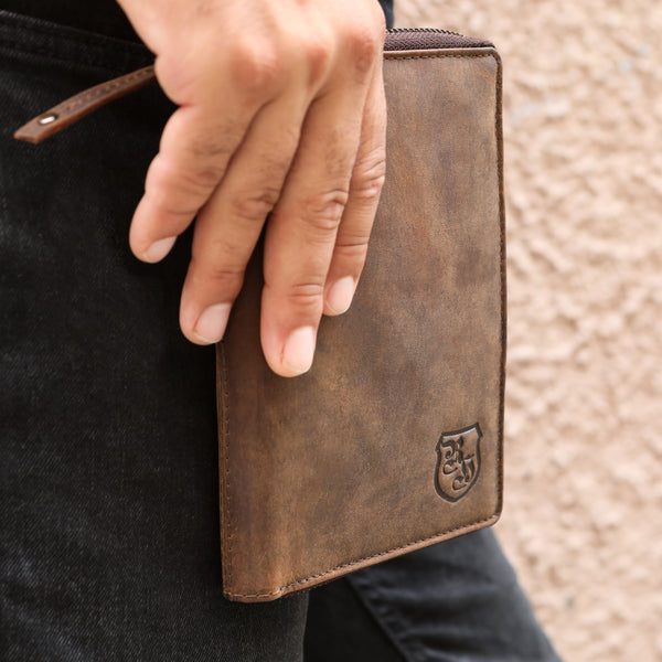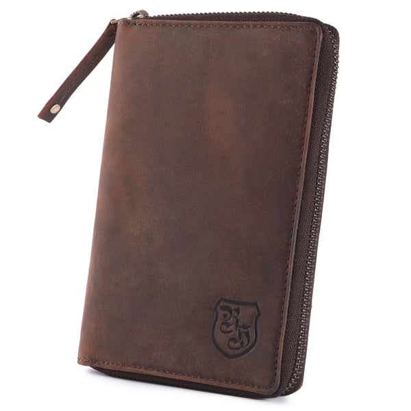 Gefertigt aus hochwertigem Echtleder überzeugt die Reisebörse nicht nur optisch, sondern auch durch ihre Langlebigkeit. Innen erwartet dich eine durchdachte Aufteilung: mehrere Kartenfächer, ein großes Steckfach für den Reisepass, ein Reißverschlussfach für Münzen und ein separates Handyfach. Dank des umlaufenden Reißverschlusses bleibt alles sicher an Ort und Stelle – auch bei viel Bewegung.