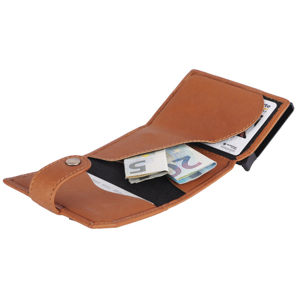 Habe mir das Kartenetui bestellt, weil es Ersatz für meinen alten Geldbeutel sein soll. Aber ich bin wirklich alles andere als zufrieden. Zum einen ist der Entriegelungsmechanismus komplett funktionslos, er hält nur die Karten fest im Gehäuse. Dagegen war es bei meinem alten Geldbeutel so, dass die Karten gefächert herausgeschoben wurden. Dazu ist das Leder in geschlossenem Zustand so steif, dass das Scheinfach seltsam vom Kartenfach absteht. Ich bin wirklich mehr als nur enttäuscht...
