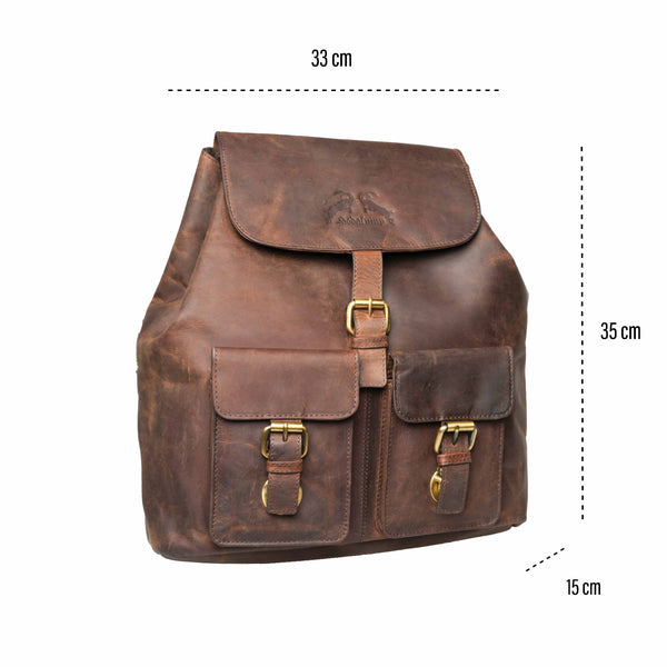 Das Zusammenspiel aus robustem Canvas und markanten Leder-Elementen verleiht dem Rucksack seinen einzigartigen Vintage-Charme.