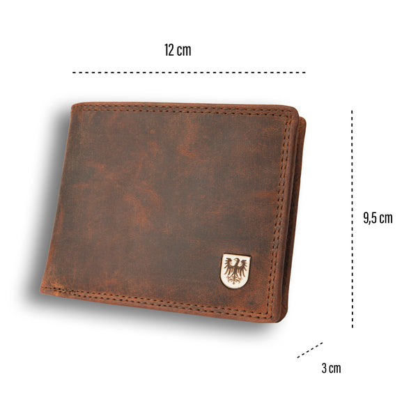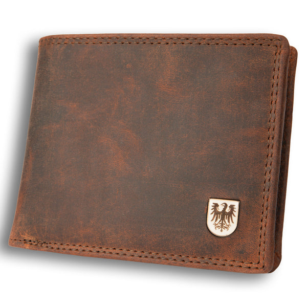 Die Wappenprägung auf dem Echtleder macht diese Börse zu einem stilvollen Hingucker mit Haltung.