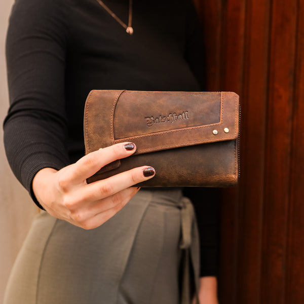 Mit feinem Leder & Ratschkatl-Details zeigst du Stil – auch beim Zahlen.