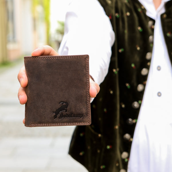 Ob im Alltag, auf Reisen oder beim Business-Lunch – mit der Großen Hochformat Geldbörse Raudi hast du alles Wichtige griffbereit und sicher verstaut. Ein echtes Stück Hodalump für Charakterköpfe, die wissen, was zählt.