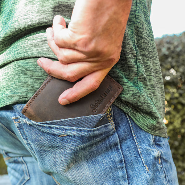 Das ist ganz einfach: Wir fertigen unsere Geldbeutel ausschließlich per Hand aus echtem vollnarbigen Büffelleder, welches als das robusteste Leder der Welt gilt. Zusätzlich versiegeln wir durch die besondere Schleiftechnik die Oberfläche der Geldbeutel. Während der Verwendung unserer Geldbeutel entsteht dadurch eine lebendige Patina die den individuellen Charakter dieses ausdrucksstarken Leders unterstreicht.