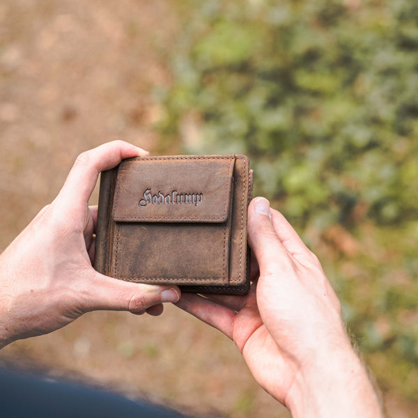 Das ist ganz einfach: Wir fertigen unsere Geldbeutel ausschließlich per Hand aus echtem vollnarbigen Büffelleder, welches als das robusteste Leder der Welt gilt. Zusätzlich versiegeln wir durch die besondere Schleiftechnik die Oberfläche der Geldbeutel. Während der Verwendung unserer Geldbeutel entsteht dadurch eine lebendige Patina die den individuellen Charakter dieses ausdrucksstarken Leders unterstreicht.