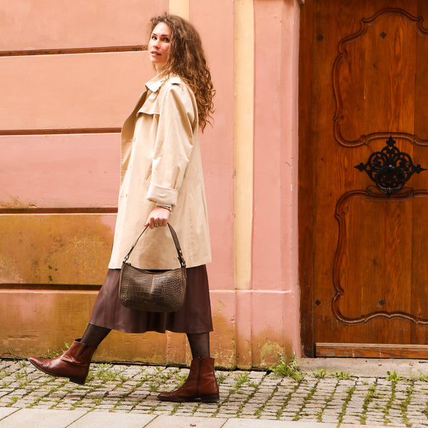 Mit ihrem zeitlosen Design und der hochwertigen Verarbeitung wird die Umhängetasche Kroko zum stilvollen Alltagsbegleiter – zuverlässig, robust und dennoch elegant. Genau das Richtige für Frauen, die Wert auf Qualität und klare Linien legen – Tag für Tag.